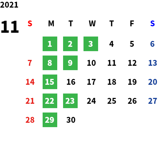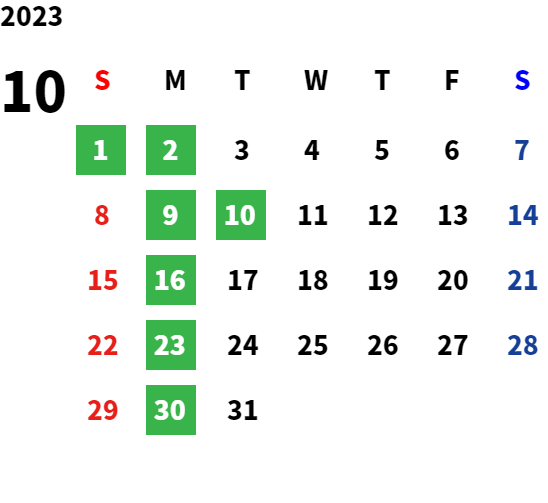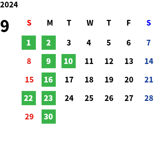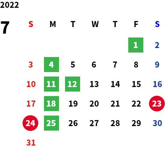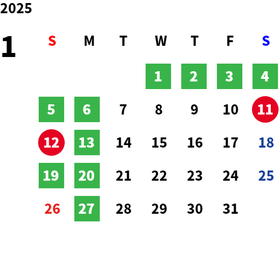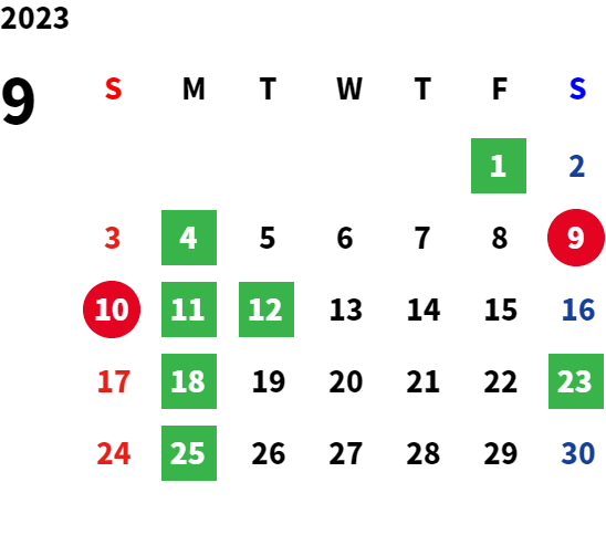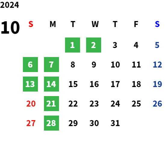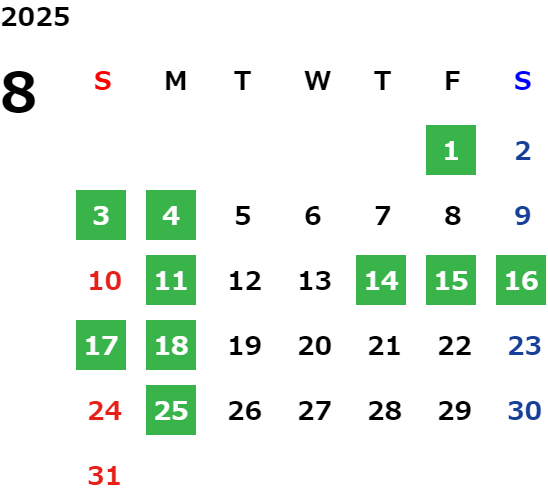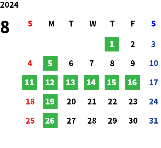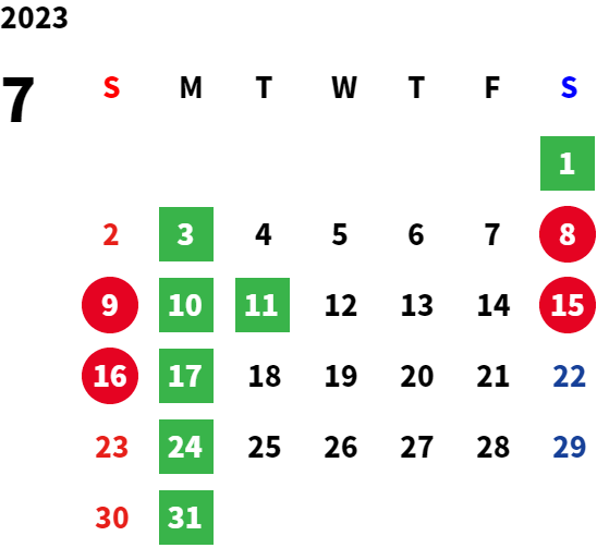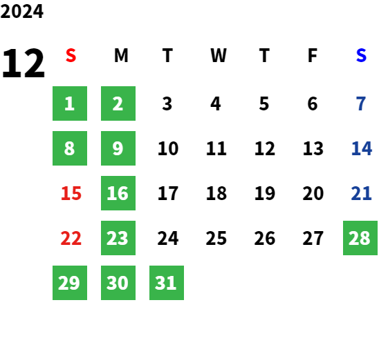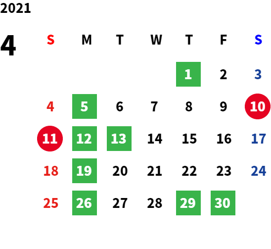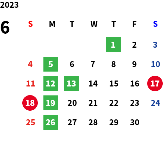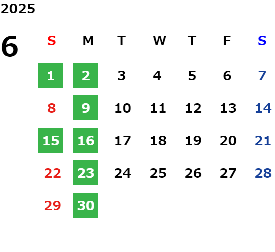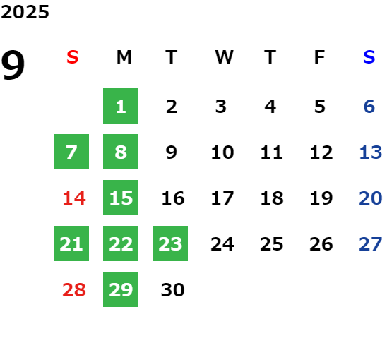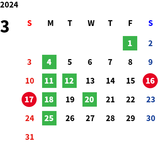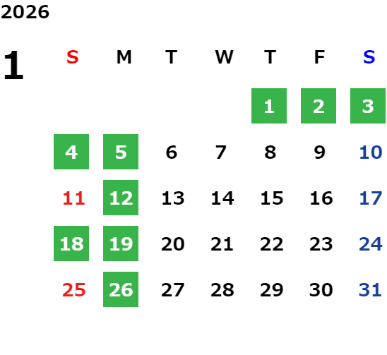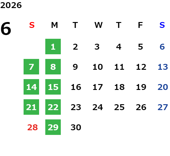毎月1日・毎週月曜日・第1・3日曜日・祝日