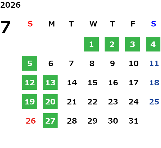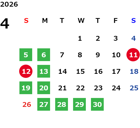 毎月1日・毎週月曜日・第1・3日曜日・祝日