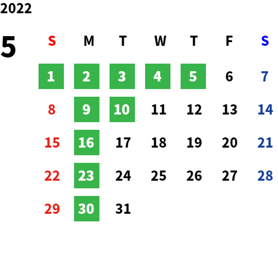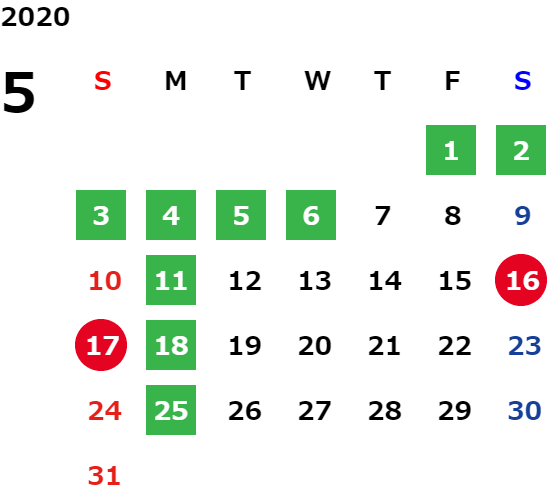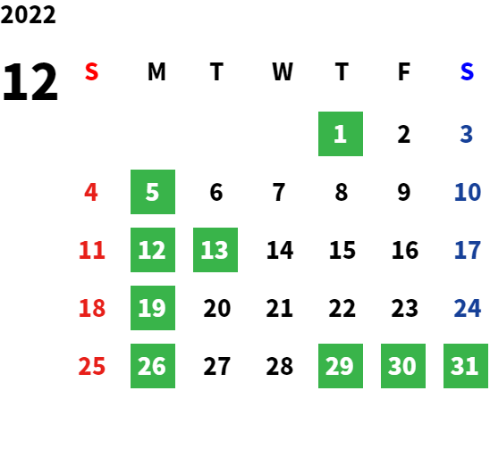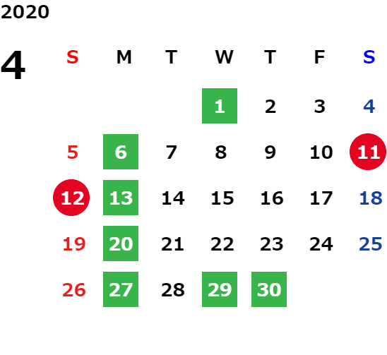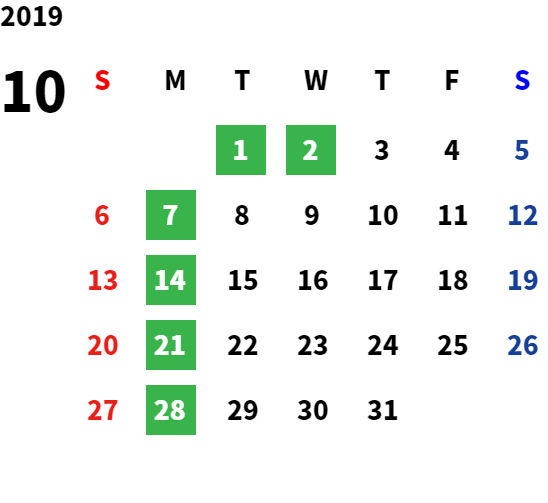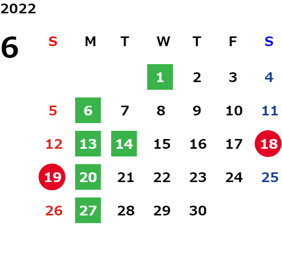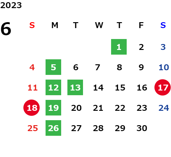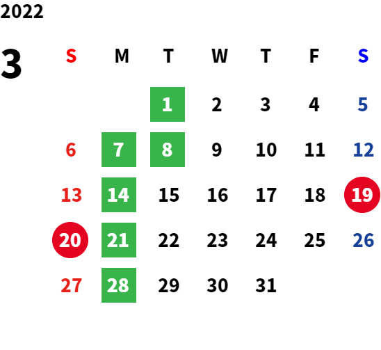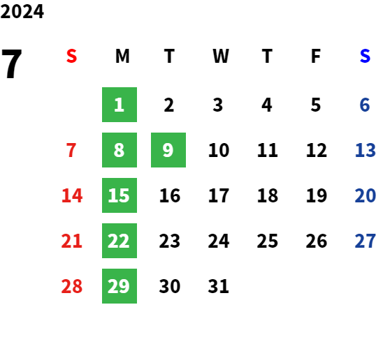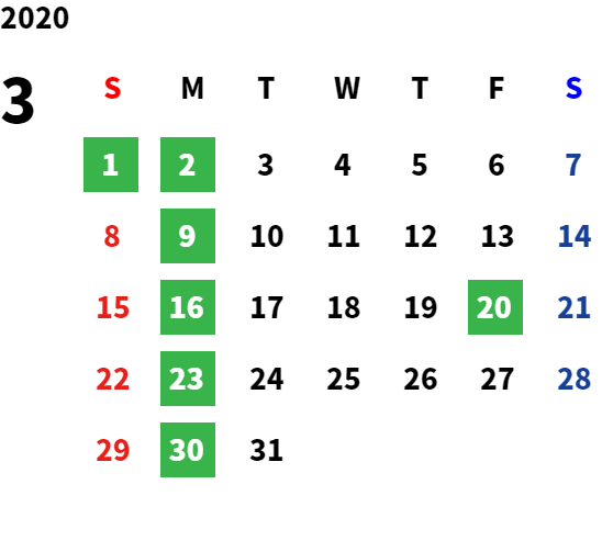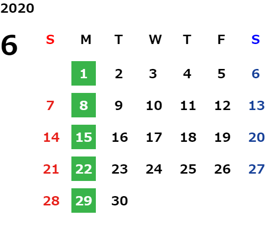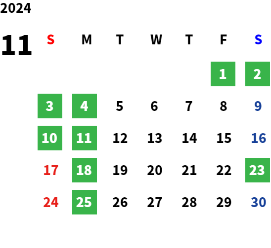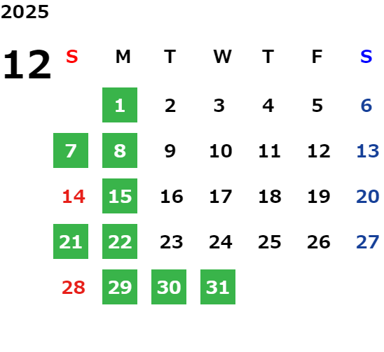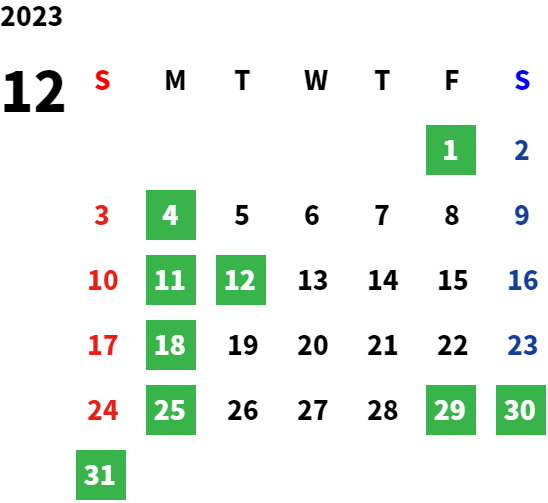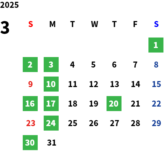 毎月1日・毎週月曜日・第1・3日曜日・祝日