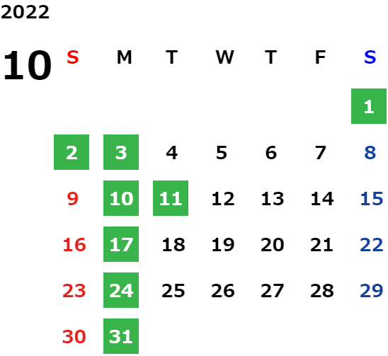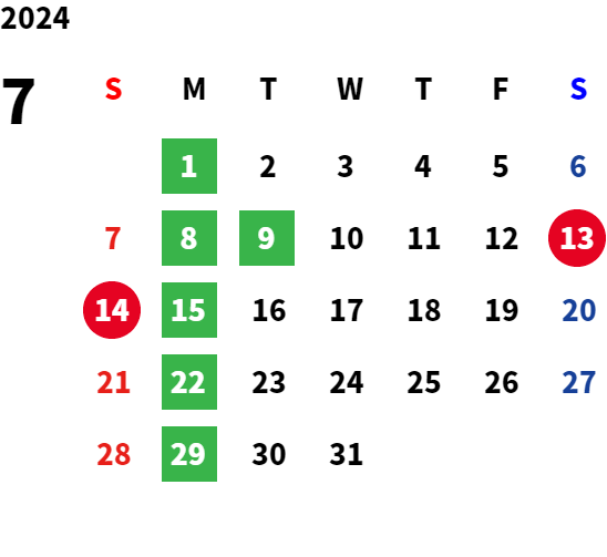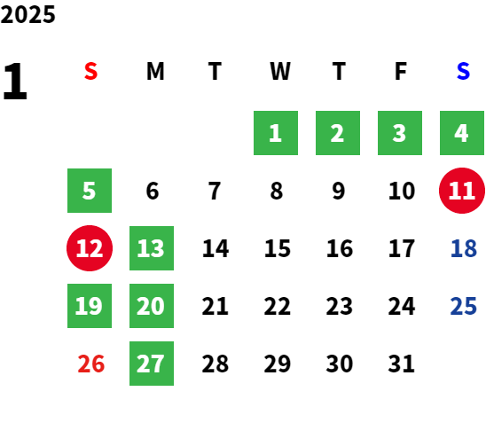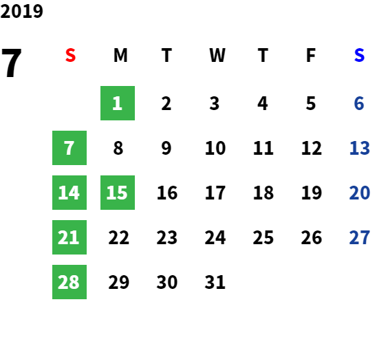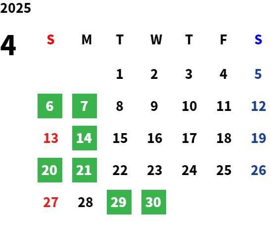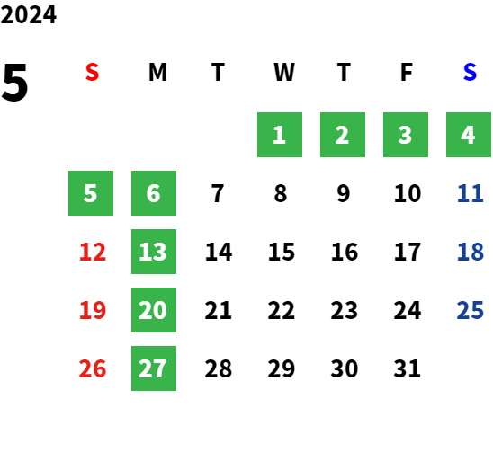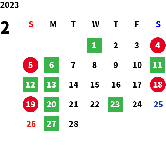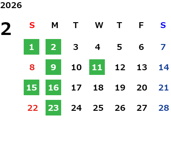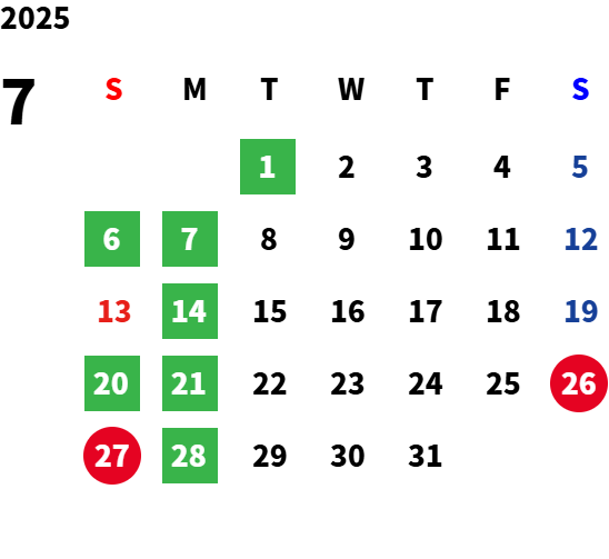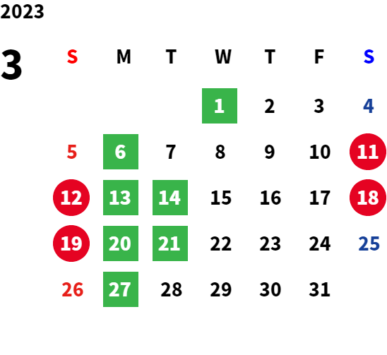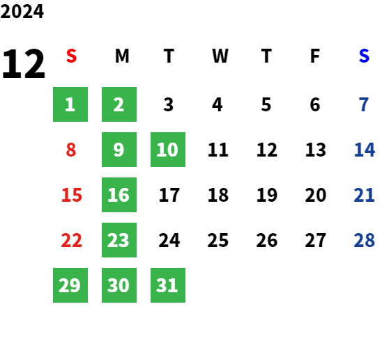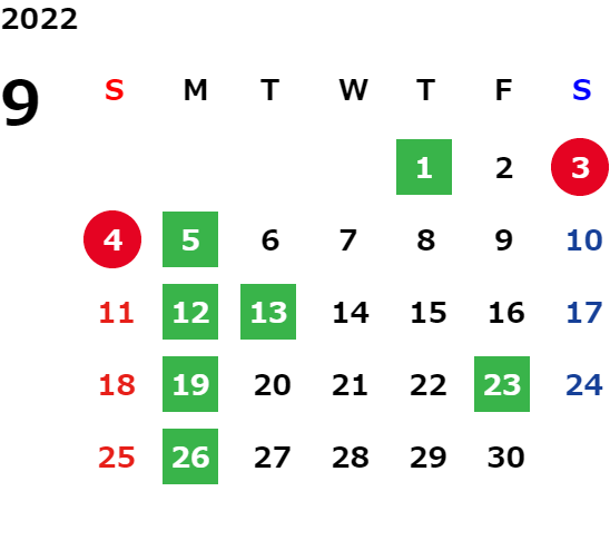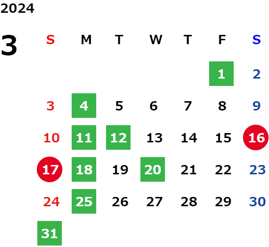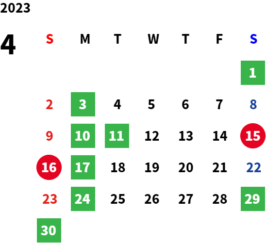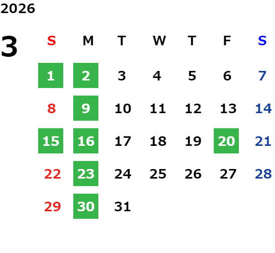 毎月1日・毎週月曜日・第1・3日曜日・祝日