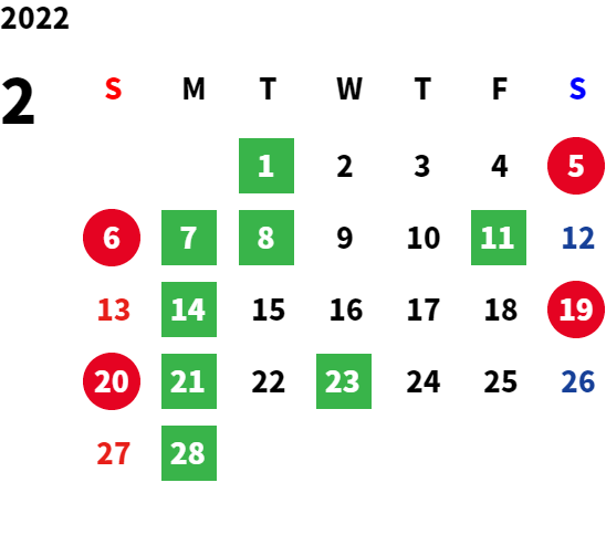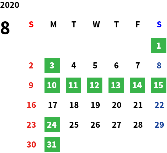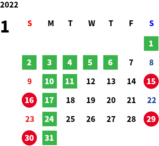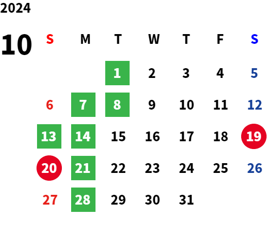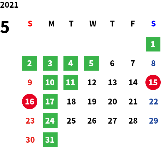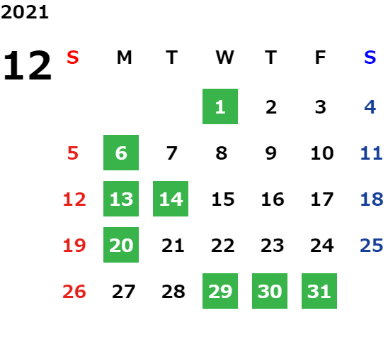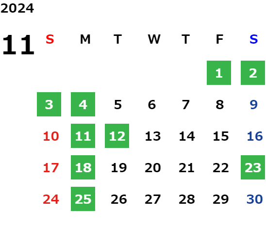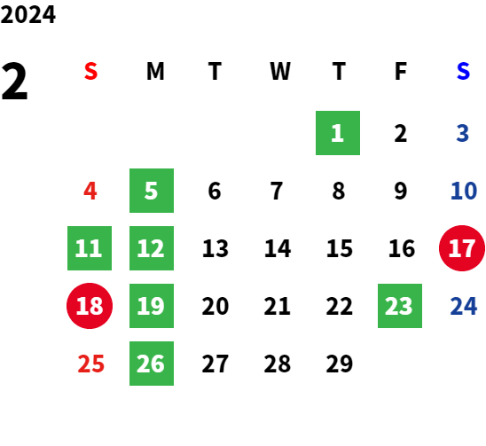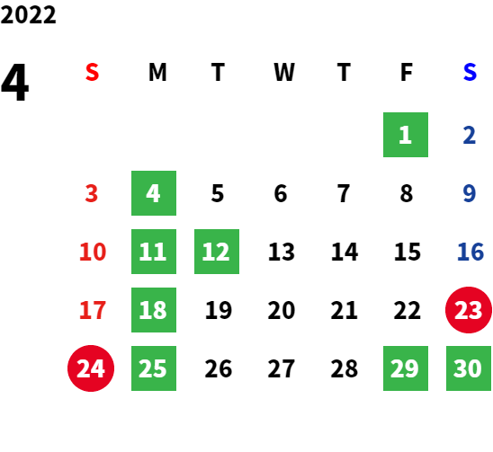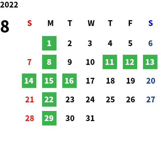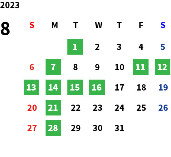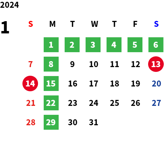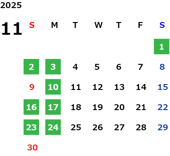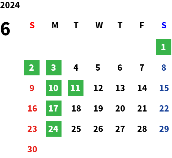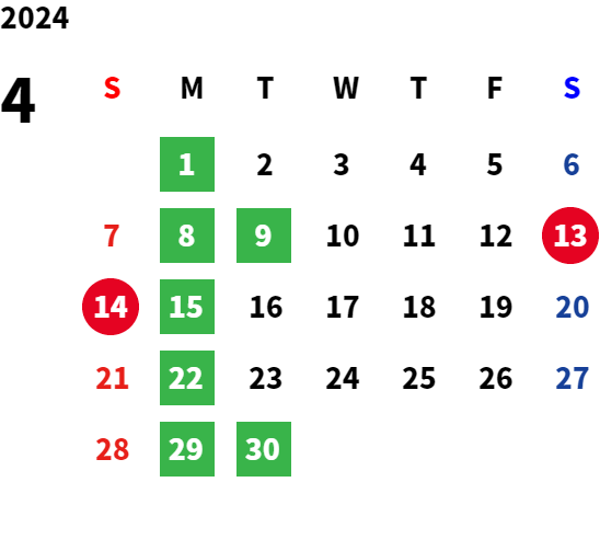 毎月1日・毎週月曜日・第1・3日曜日・祝日